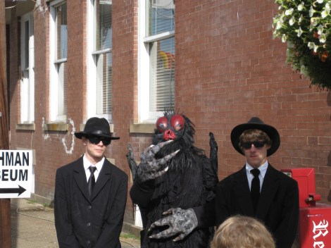 There were Men In Black sightings at the Mothman Festival last year, and the Mothman himself was with them. You never know these guys just look like young guys dressed as MIB.. but sometimes the with a festival like this going on, you never know when the REAL MIB may show up to check things out, see what is going on.